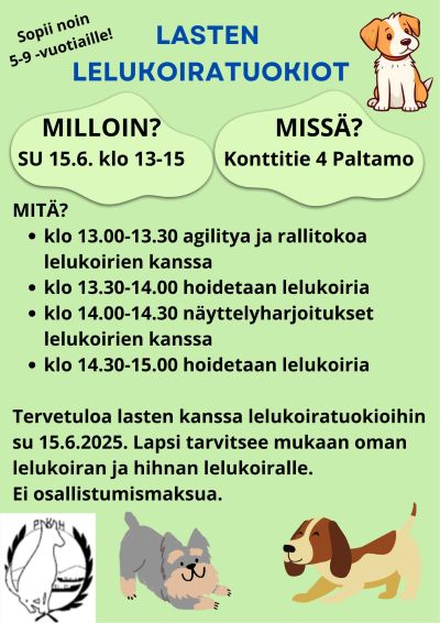 Ilmoittautumislomake lelukoirien päiväleirille: https://forms.gle/ygrdsvMt4ZozsazF6