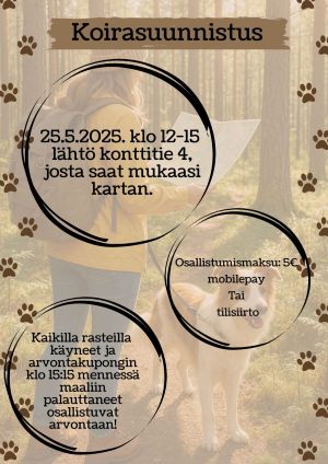 Paltamon koiraharrastajat järjestää match shown 3.5.2017 Shell Kontiomäellä. (Viitostie 2)
