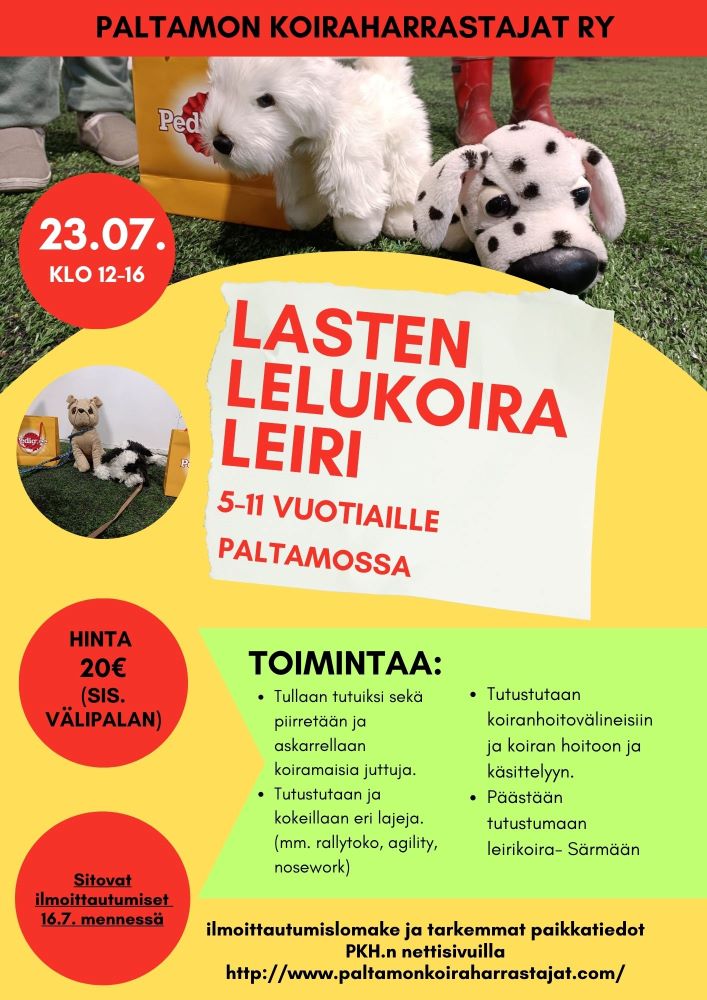 Ilmoittautumislomake lelukoirien päiväleirille: https://forms.gle/ygrdsvMt4ZozsazF6